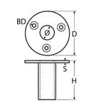 Borrdiameter (BD): 6,4 mm Diameter (D): 63,5 mm För rör-Ø: 20 mm Höjd (H): 68 mm Tjocklek (S): 4 mm Material: Rostfritt stål A4 - AISI 316 |